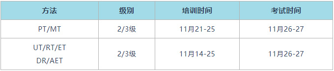 主要开展渗透检测(PT)、磁粉检测(MT)、超声检测(UT)、射线检测(RT)(含数字射线DR)、涡流检测(ET)和腐蚀检测(AET) 等6种方法的2级和3级的培训和考试鉴定工作。