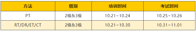 主要开展渗透检测(PT)、射线检测-胶片(RT-Film)、数字射线(DR)、涡流检测(ET)、计算机层析照相(CT) 5种方法/技术2级和3级的培训和考试鉴定工作。