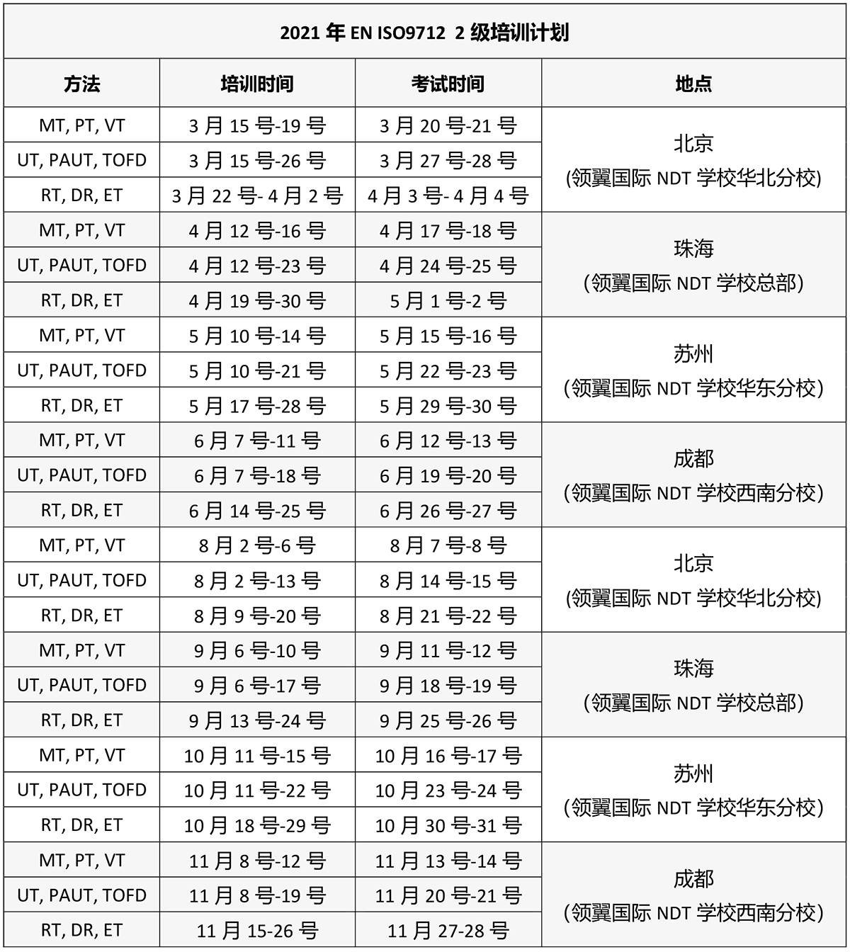 2) 以上ISO9712培训班,可同时报考美标 SNT-TC-1A 考试;