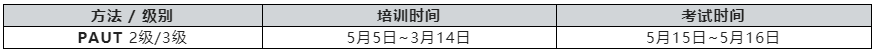 2023年5月将在苏州开展相控阵超声波检测(PAUT)方法的2级和3级的培训和考试鉴定工作。
